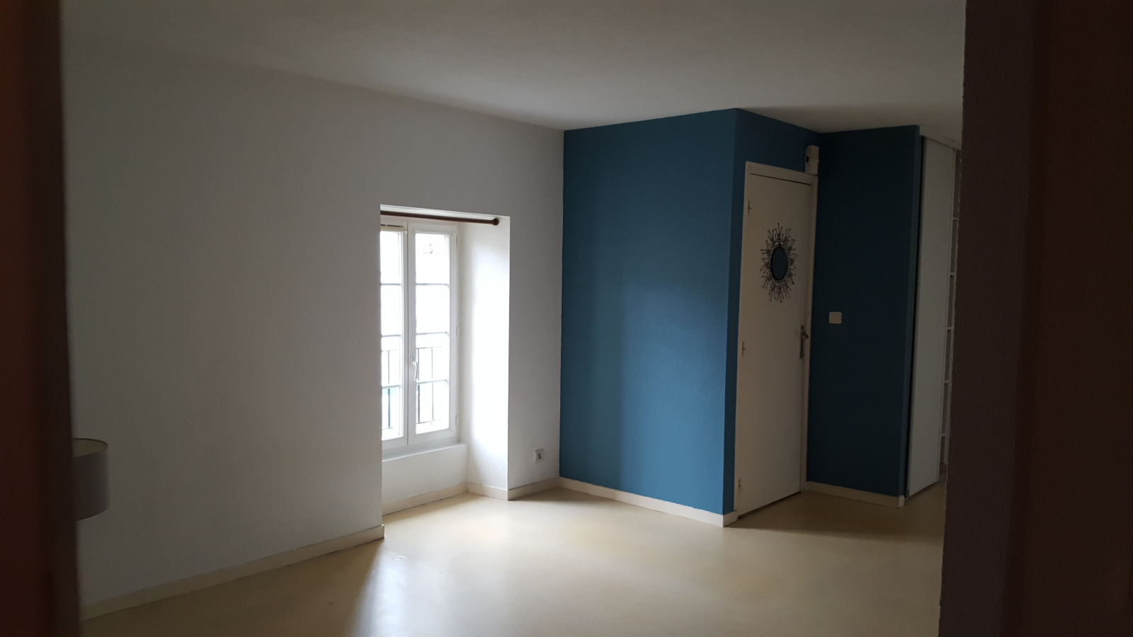 appartement de type T3 au premier étage d'un immeuble ancien comprenant un séjour avec cuisine, deux chambres, salle de bains, WC