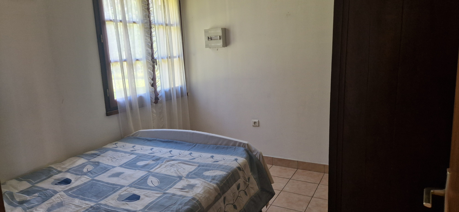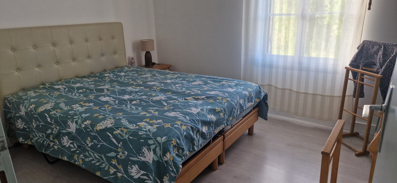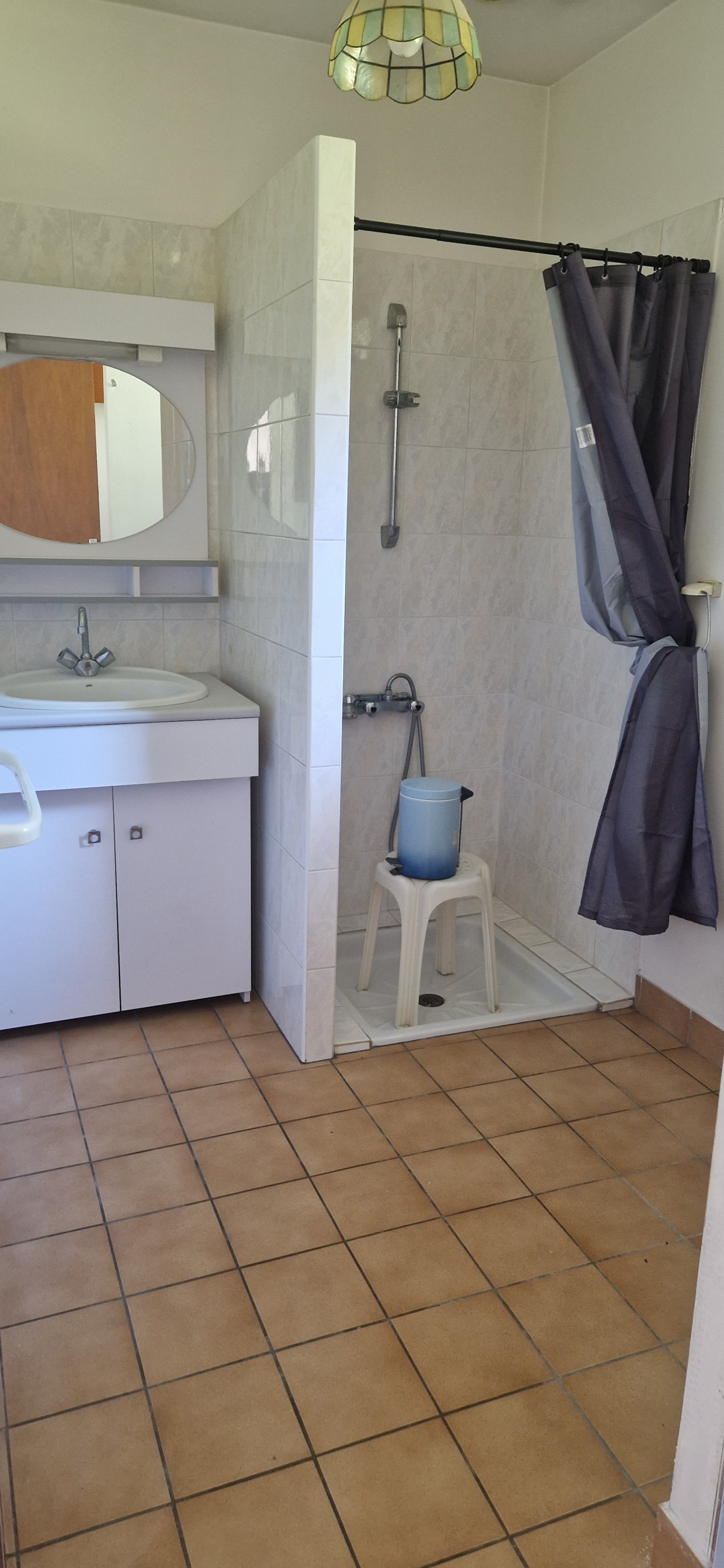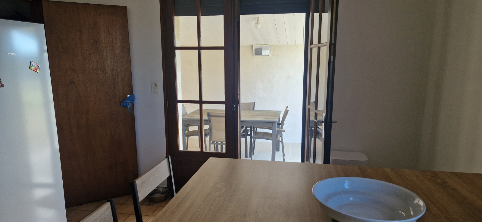 une maison mitoyenne de plain-pied comprenant, une cuisine, séjour, deux chambres, salle d'eau WC, veranda attenante